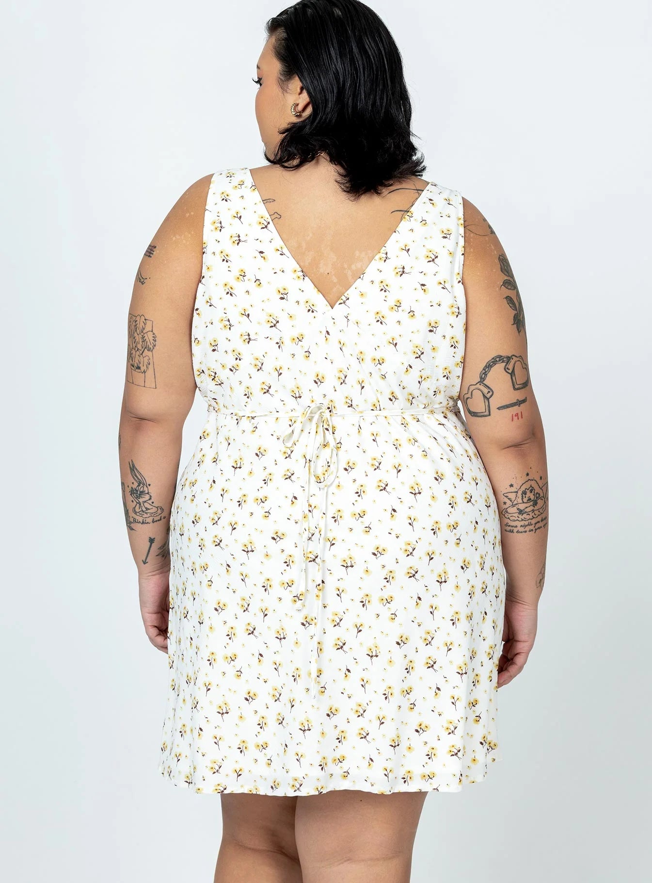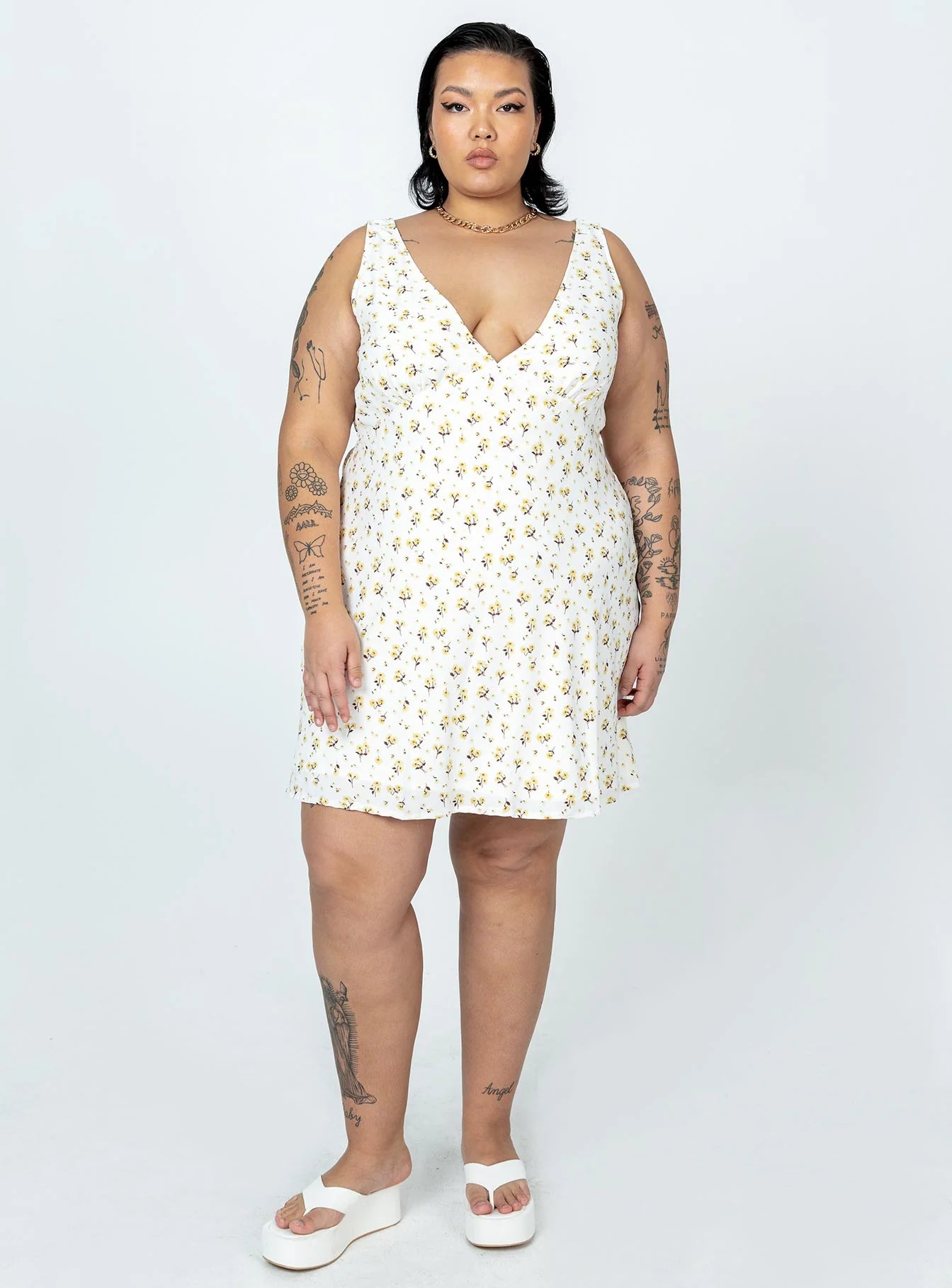 Nellie Mini Dress White / Yellow Floral Curve